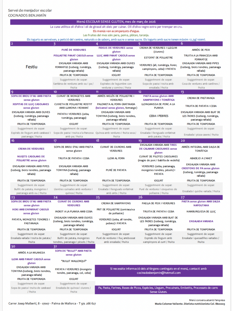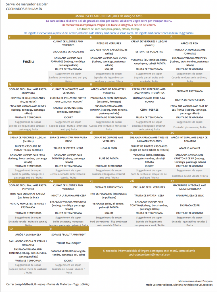 Menú Març
